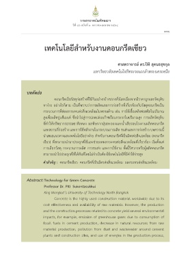 คัำ�สำำ�คััญ : คอนกรีีตเขีย่วั คอนกรีีตที่ี�เป็็นมีิตรีต่อสิ�งแวัดุล้อมี ผลกรีะที่บต่อสิ�งแวัดุล้อมี