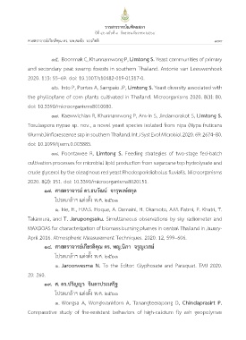 ๑๕. Boonmak C, Khunnamwong P, Limtong S. Yeast communities of primary