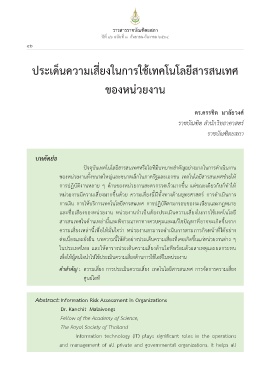 คัำ�สำำ�คััญ : ความีเสี�ยีง การปัระเมีินความีเสี�ยีง เทคโนโลยีีสารสนเทศ การจัดำการความีเสี�ยีง