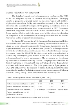 Table 1 Global goals of malaria elimination (WHO, 2015)