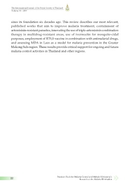 22 Precision Tools for Malaria Control and Mahidol University’s