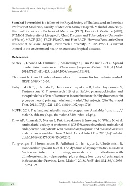 Chotivanich K and Hanboonkunupakarn B. Ivermectin for malaria control.