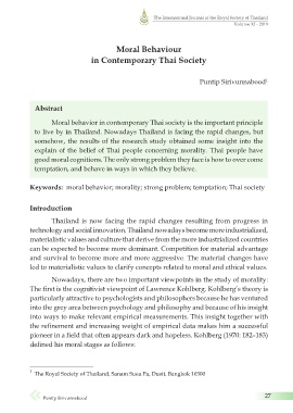 Keywords: moral behavior; morality; strong problem; temptation; Thai society