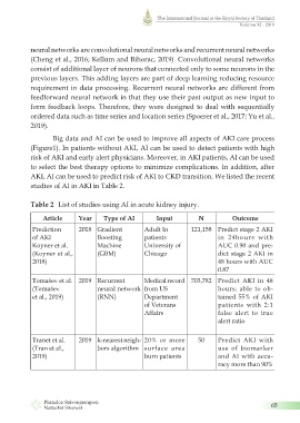 risk of AKI and early alert physicians. Moreover, in AKI patients, AI can be used