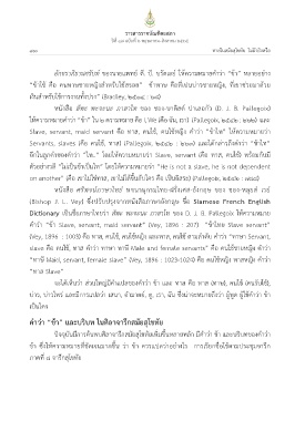 ค้ำาว่า “ข้า Slave, servant, maid servant” (Vey, 1896 : 207) “ข้าไทย Slave servant”