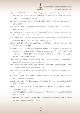 Royal Gazette. (1926). Establishment of the Royal Society of Siam. 25 April 1926, volume 43,