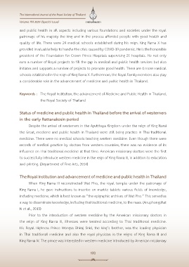 Keywords : The Royal Institution, the advancement of Medicine and Public Health in Thailand,