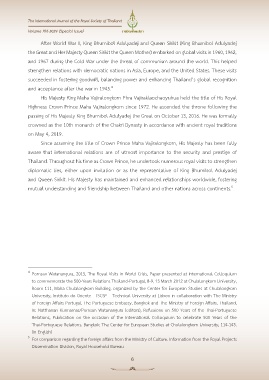 4 Pornsan Watanangura, 2015, The Royal Visits in World Crisis, Paper presented at International Colloquium