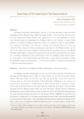 Keywords : Royal Grace, His Majesty King Maha Vajiralongkorn, Thai Classical Dance.