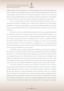 (2008), political scientist Larry Diamond of Stanford University argues that modern democracy